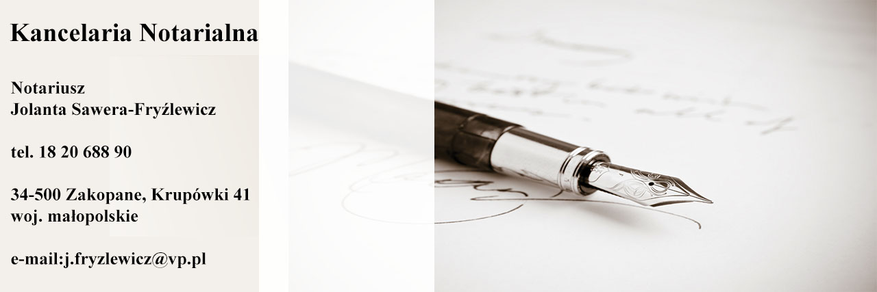 Notariusz Jolanta Sawera-Fryźlewicz jako osoba zaufania publicznego, po mianowaniu przez Ministra Sprawiedliwości do pełnienia funkcji notariusza, czuwa aby czynności notarialne zabezpieczały interesy klientów kancelarii oraz osób, dla których czynność te mogą powodować skutki prawne. Pełnioną funkcją i posiadaną wiedzą notariusz Jolanta Sawera-Fryźlewicz gwarantuje poprawność wykonywania czynności oraz ich zgodność z obowiązującymi w Polsce przepisami prawa.